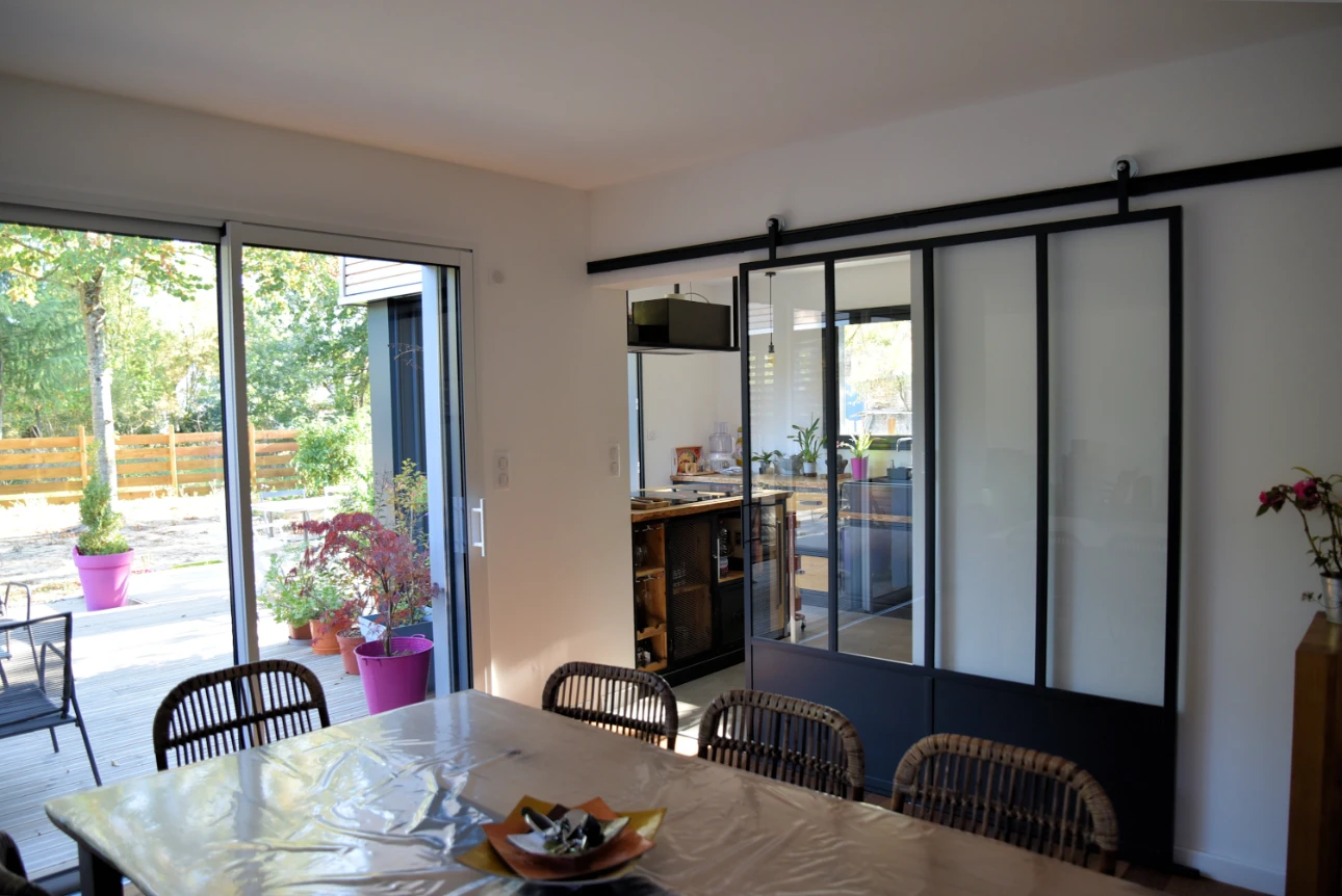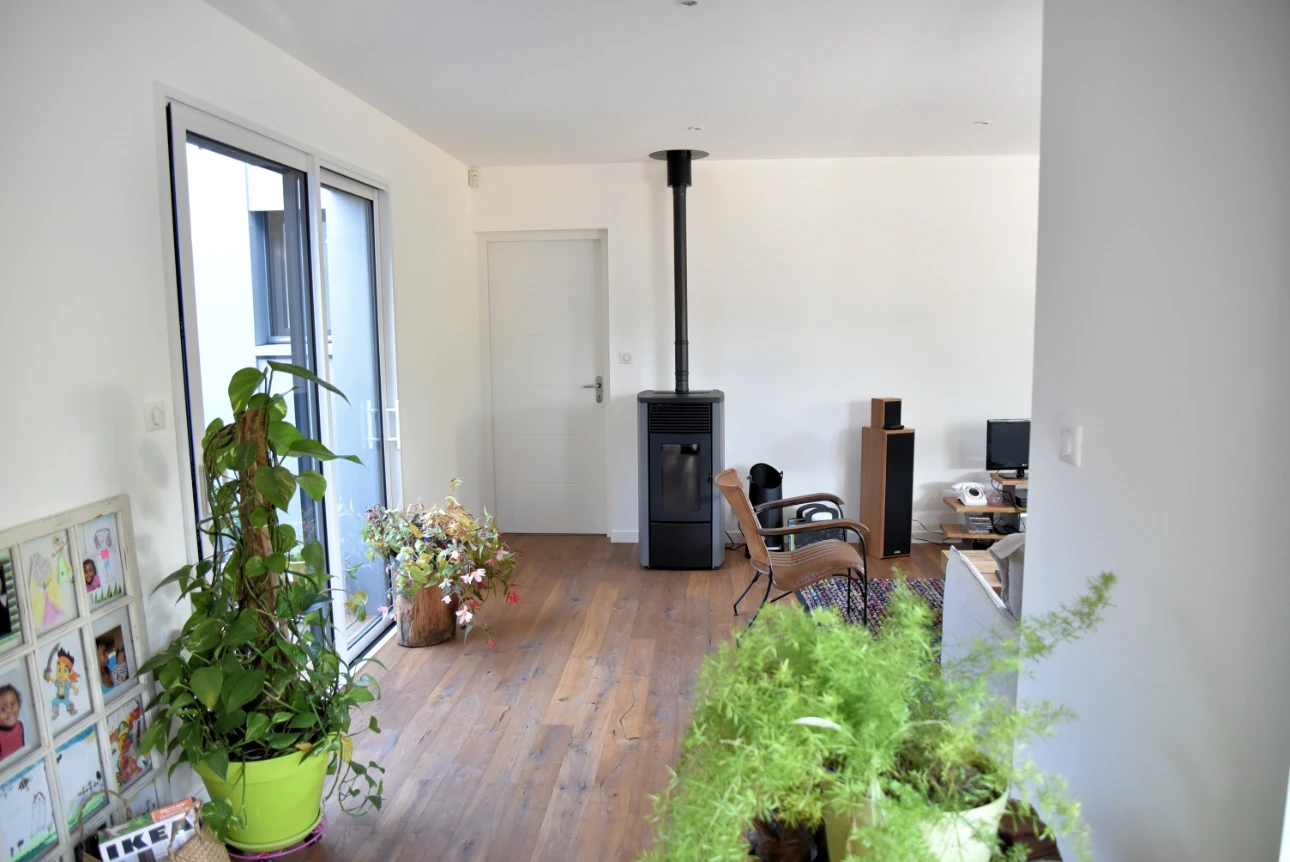 Au-delà des principes du bio-climatisme qui ont été mis en œuvre pour cette réalisation, celle-ci, en plus de n’être chauffée que par un poêle à granulés, est également dotée d’une VMC double flux et d’un ballon d’eau chaude thermodynamique.