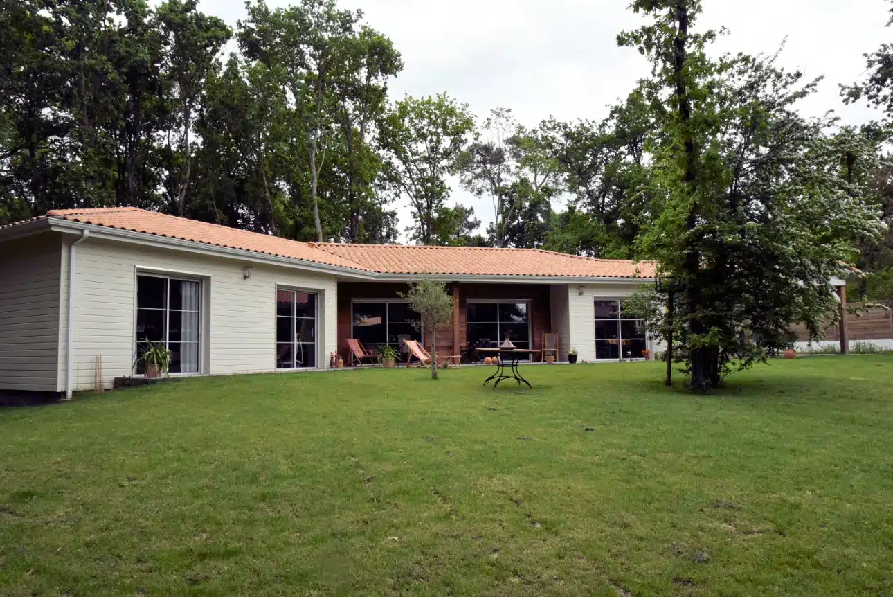 Cette maison ossature bois de plain-pied prend en compte l’ensemble des contraintes environnementales tout en répondant aux caractéristiques de l’architecture vendéenne traditionnelle.
