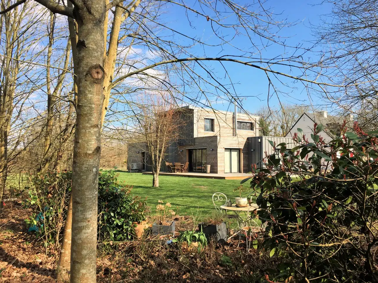 Cette construction en ossature bois est située sur un terrain de 1800m² dont une grande partie est classée boisée.