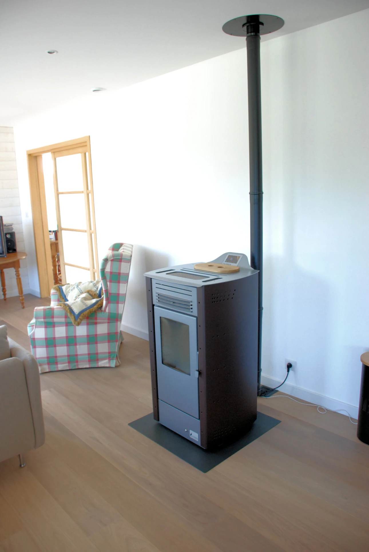 En ce qui concerne le choix des équipements, la maison s’est vue dotée d’un poêle à pellets comme unique source de chauffage, d’une VMC double flux pour le brassage de l’air et d’un ballon thermodynamique pour la production d’eau chaude sanitaire.