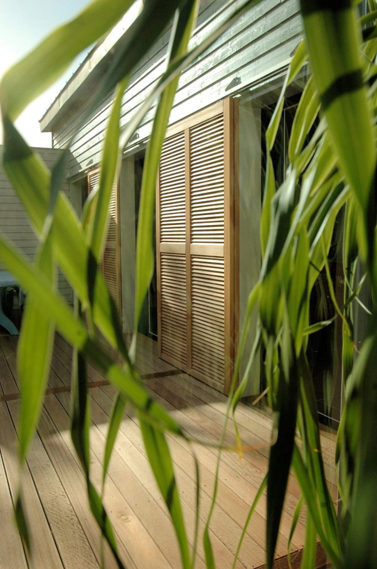 Cette maison déploie son plain-pied en forme de U face à une belle terrasse en bois protégée des vents dominants.